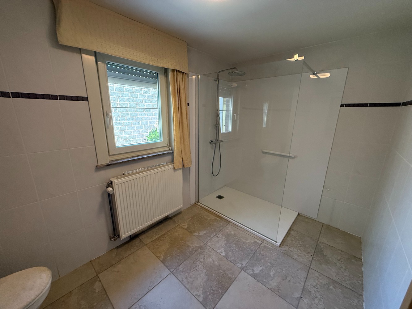 De indeling gaat als volgt: inkomhal, ruime leef-en eetruimte, aparte keuken met eetplaats, grote veranda, eerste badkamer met inloopdouche en toilet, een wasplaats en een bergruimte. Alsook is er een inpandige garage en een kelder.