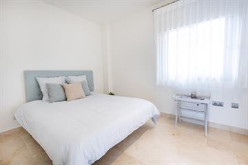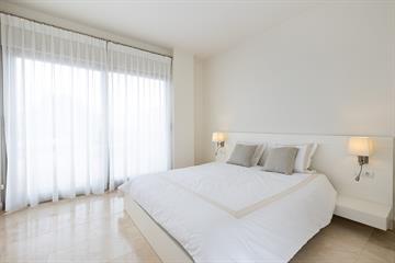 De hoofdslaapkamer beschikt over een en-suite badkamer en directe toegang tot het terras. De tweede slaapkamer is ruim en licht. De woning is afgewerkt met hoogwaardige materialen, voorzien van airconditioning en vloerverwarming in de badkamer.