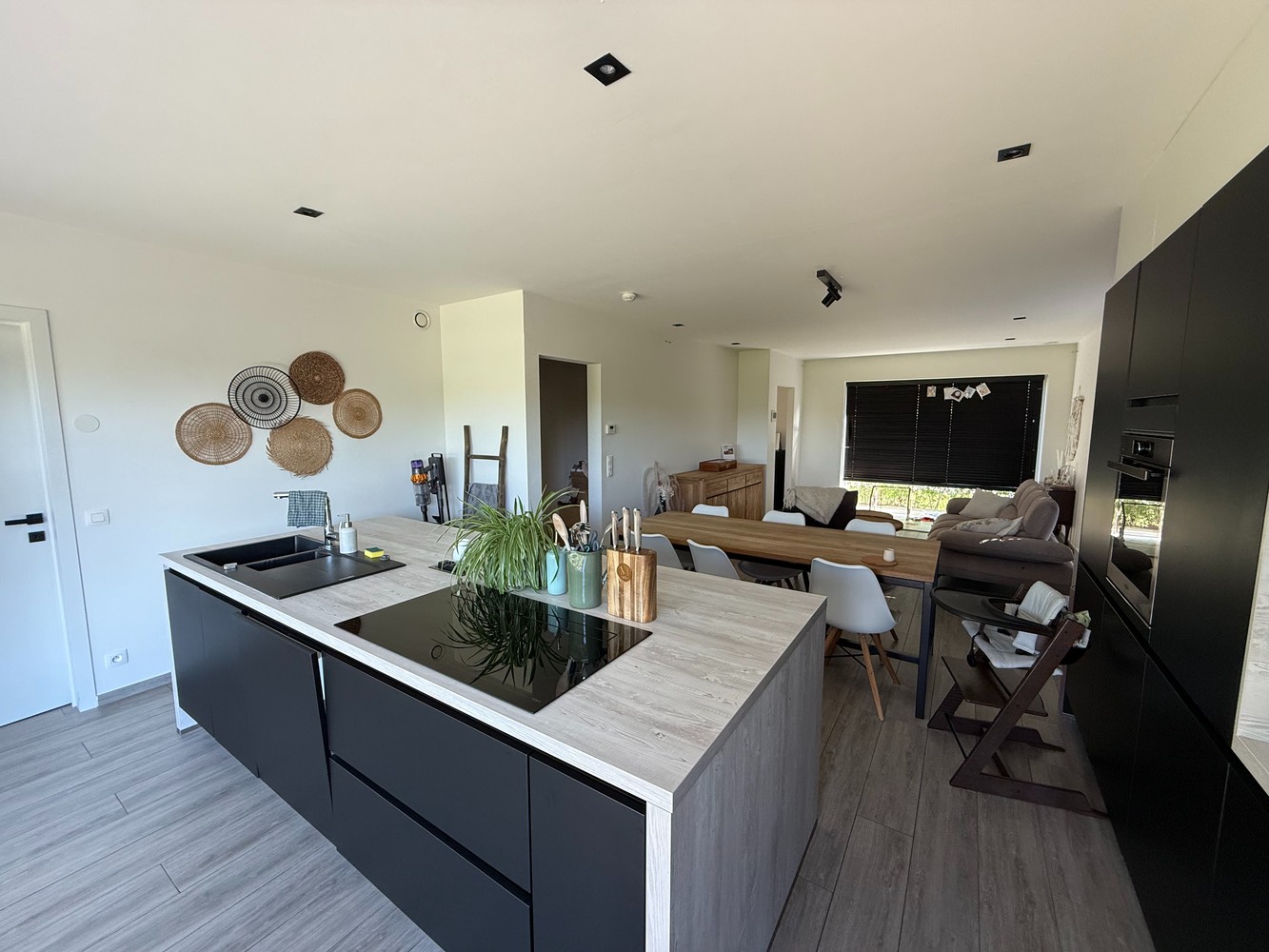 Bij het betreden van de woning word je verwelkomd in een ruime en lichtrijke leef- en eetruimte met open keuken. De open indeling zorgt voor een aangenaam gevoel van ruimte en een vlotte verbinding met de tuin.