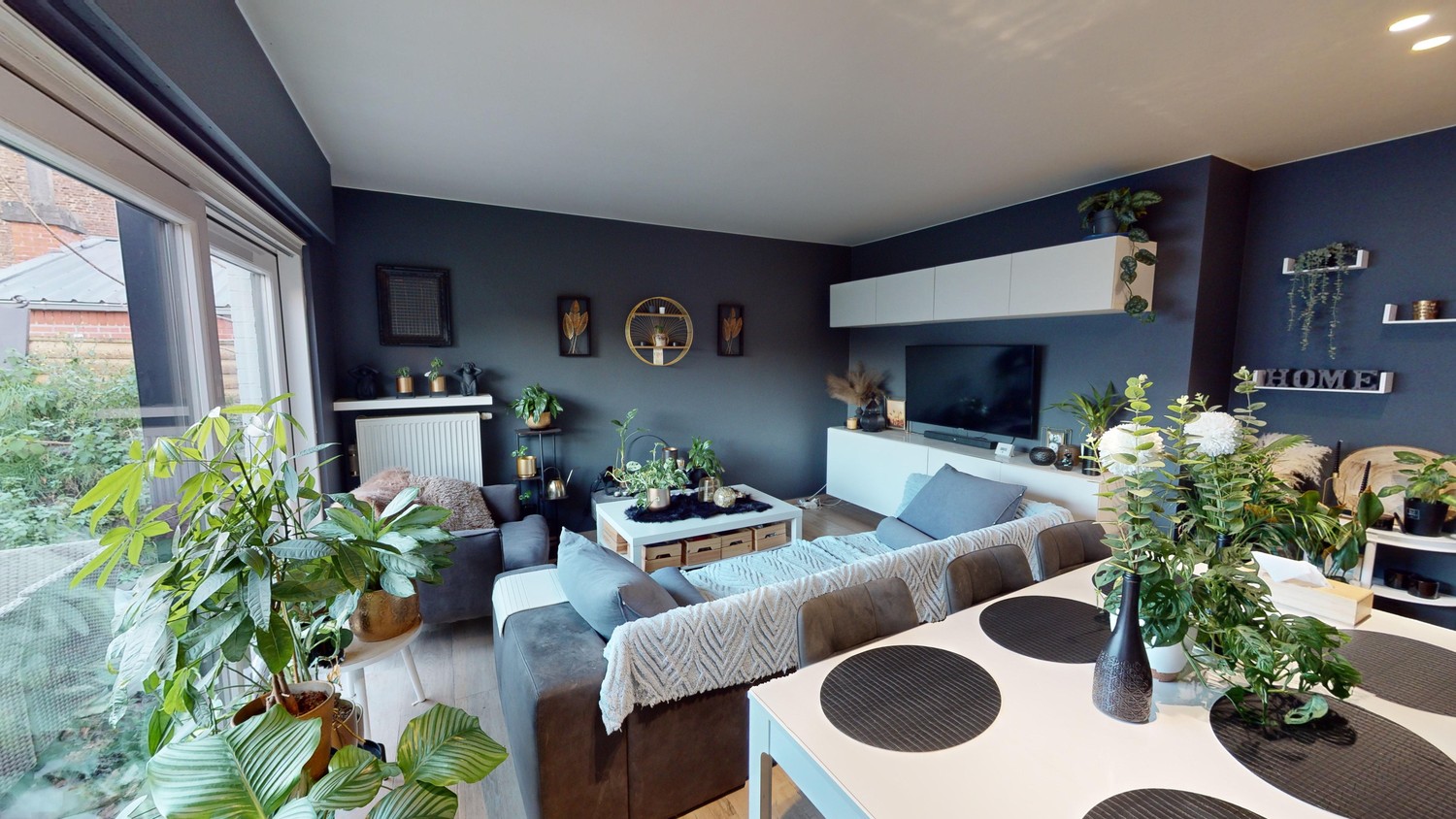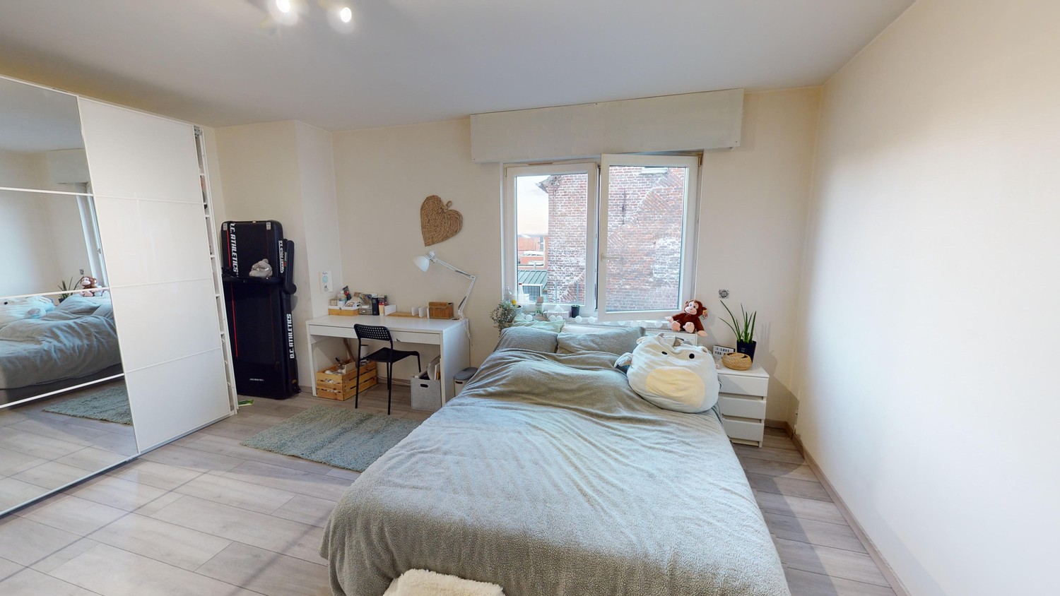 - Gelijkvloers: leef- en eetruimte, aparte keuken met eetplaats, badkamer, bergruimte en gastentoilet