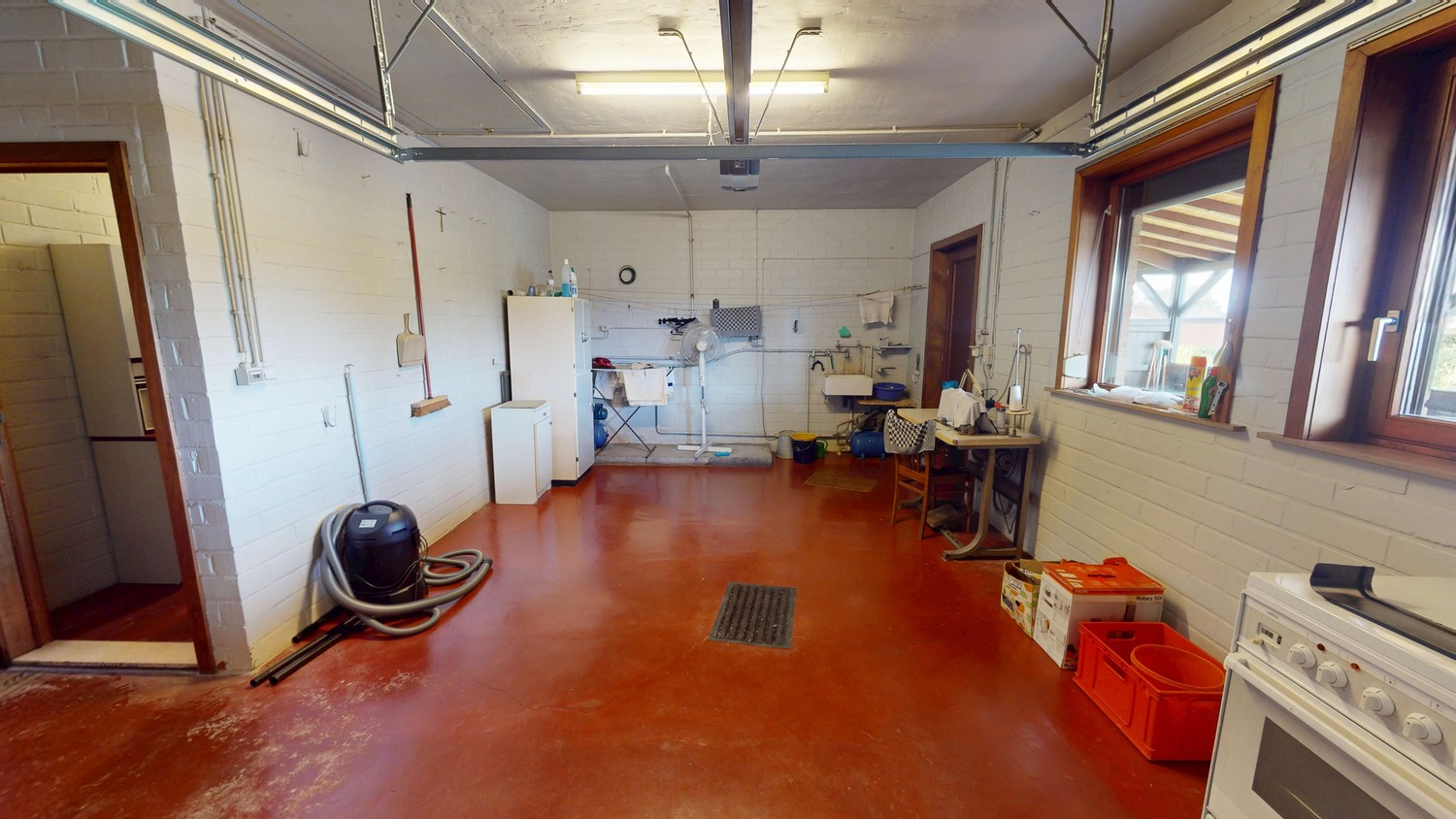 Inrichting: inkomhal met gastentoilet, ruime leef-en eetruimte, aparte keuken met eetplaats en berging, wasruimte, 3 slaapkamers, bureauruimte (of kinderkamer), badkamer en een inpandige garage.