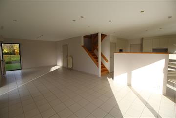 De indeling gaat als volgt: inkomhal, grote leef-en eetruimte met half open keuken met eethoek, wasplaats en toilet.
